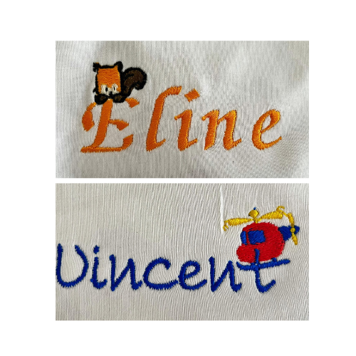 We verwerken het figuurtje in de naam en borduren dit op het gekozen product.