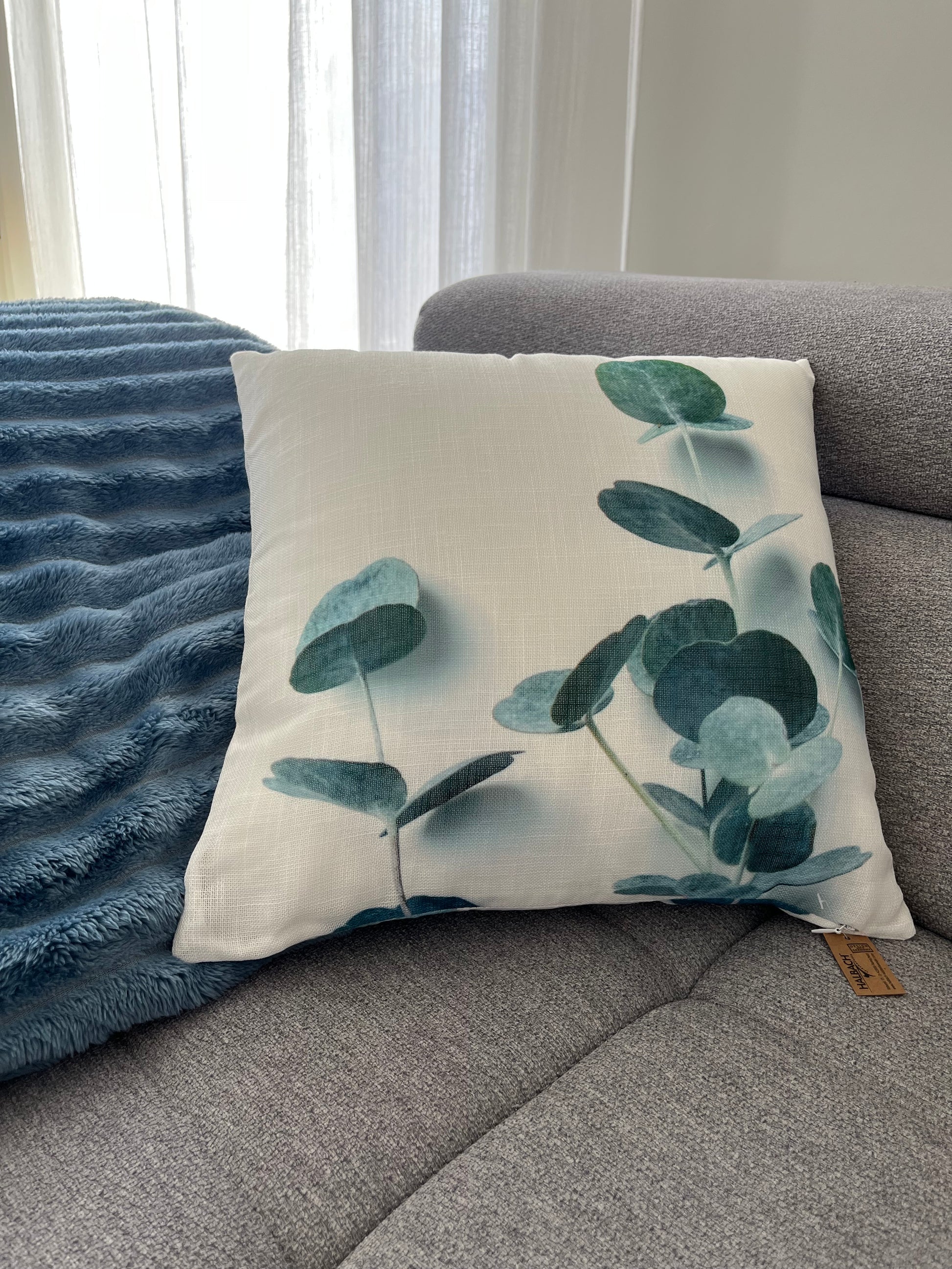Dit stijlvolle kussen met een subtiele eucalyptustekening brengt rust in huis. Laat er een naam, betekenisvolle tekst of symbool op borduren en maak er een uniek en persoonlijk item van. Een prachtig cadeau bij afscheid, troost, of gewoon als liefdevol gebaar.
