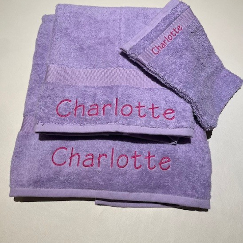 Er wordt ofwel de naam in grote letters (3 cm) geborduurd, zonder figuurtje ofwel de naam in kleinere letters (1 cm) mét figuurtje.